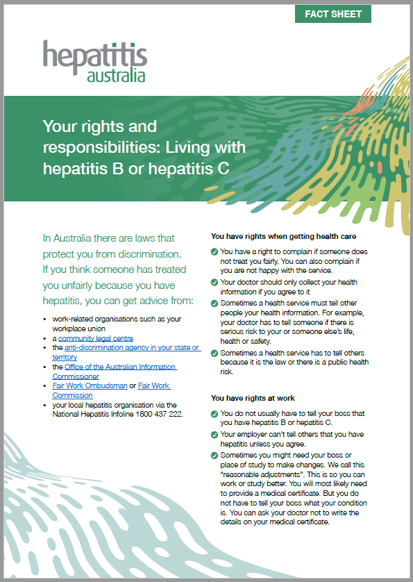 This brief factsheet provides an overview of peoples' rights and responsibilities when living with hepatitis B or hepatitis C.